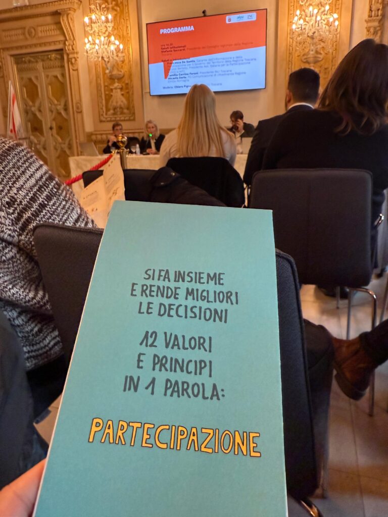 La maratona di Palazzo Bastogi si è conclusa con una sala attenta e concentrata. Il pubblico, composto da una settantina di persone in presenza (tra cui i nostri soci Matteo Garzella, Susan George, Raffaello Martini, e Luca Raffini) e una trentina collegate online, nei commenti raccolti dopo l’evento ha espresso unanime stupore nel constatare la vastità di ambiti in cui l’approccio partecipativo si sta estendendo, superando le barriere settoriali e territoriali.Questa consapevolezza diffusa è il vero lascito della giornata. Nonostante le difficoltà politiche e il congelamento dei finanziamenti della Lr. 46/2013 (dovuto al mancato rinnovo dell’Autorità per la Partecipazione), è emerso con chiarezza che il modello partecipativo esplicitato dai 12 princìpi della Carta ha ormai messo radici profonde nelle pratiche della Regione Toscana. Ci auguriamo che tale percorso continui, alimentato dalla necessità dei territori e dalla speranza di vedere presto una nuova stagione istituzionale capace di sostenerne appieno l’importanza strategica.